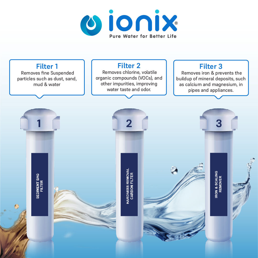 3. No Return or Refund After Package AcceptanceThe IONIX Sky Tank utilizes a 3-stage filtration system that removes sediment, chlorine, volatile organic compounds (VOCs), iron, heavy metals, and hardness from water. It also balances the water's pH and prevents scaling, ensuring clean and safe water for your entire household.