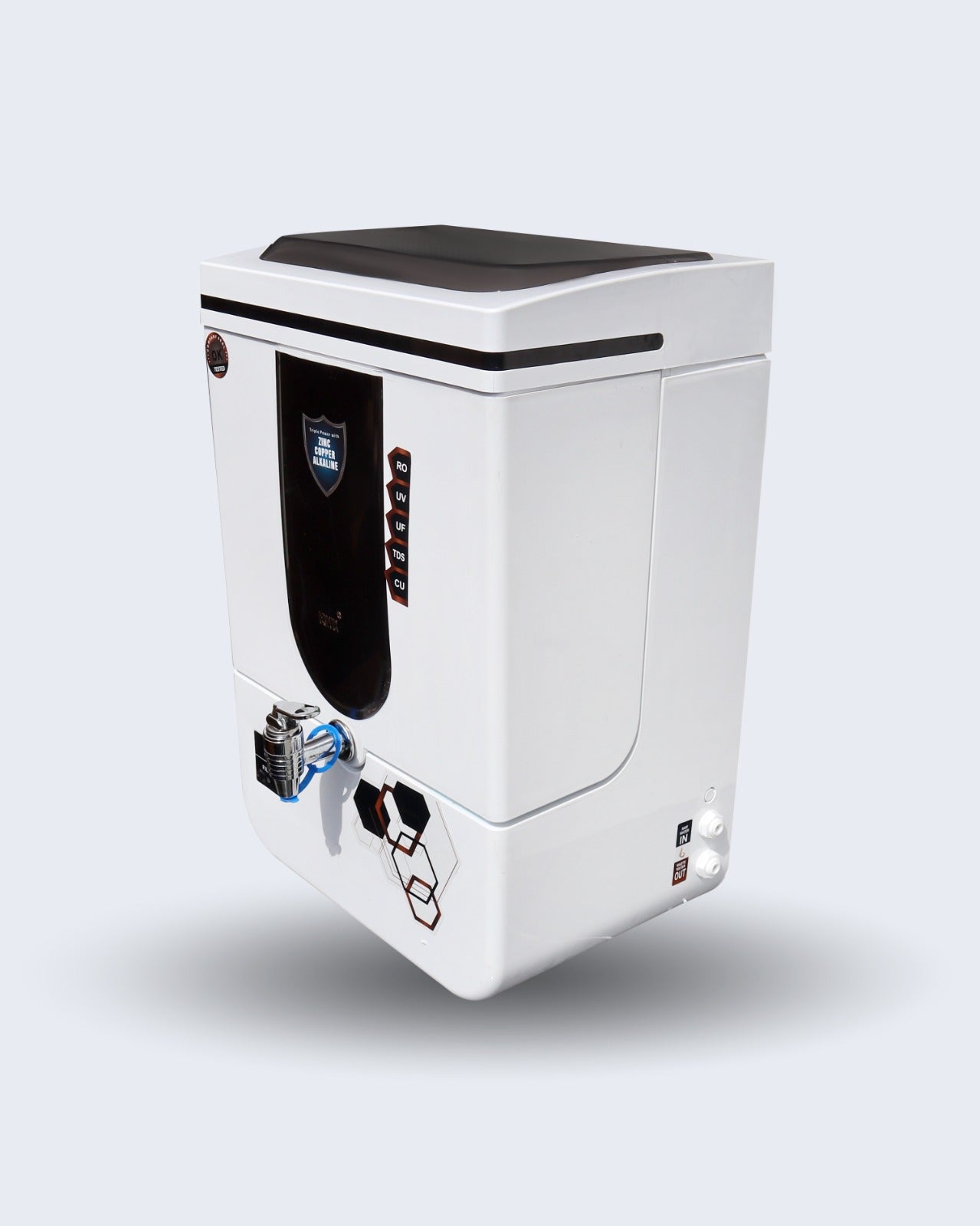 6-Stage Advanced Filtration System: The purifier features a comprehensive 6-stage purification process, including Reverse Osmosis (RO), Ultraviolet (UV), Ultrafiltration (UF), and Copper Alkaline filters. This multi-stage filtration ensures that the water is free from harmful contaminants, bacteria, viruses, heavy metals, and dissolved impurities while retaining essential minerals, making it safe and healthy for consumption.
