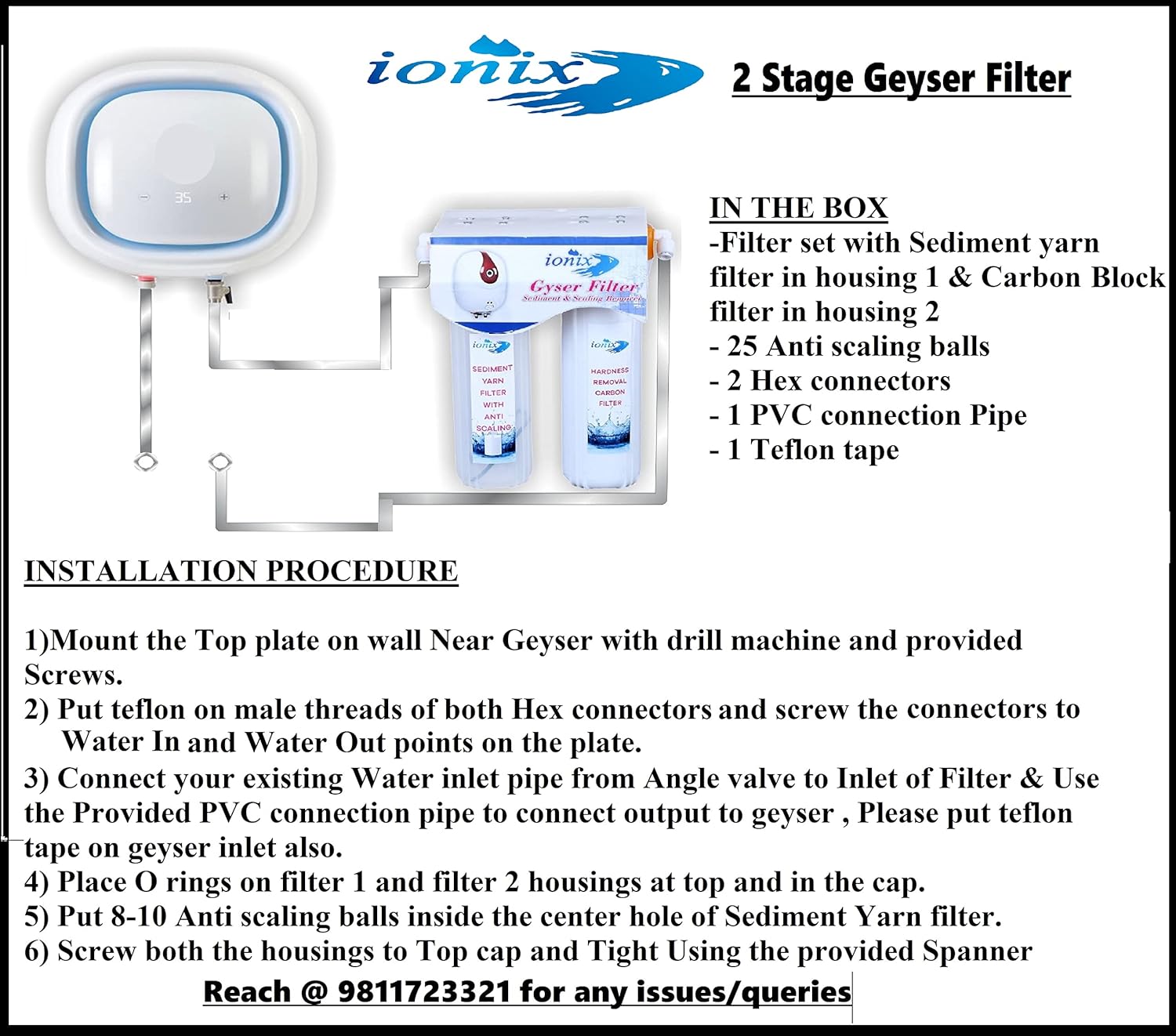 3. No Return or Refund After Package AcceptanceThe IONIX Geyser Filter uses a dual-stage filtration system to remove sediment, rust, and hardness from your water supply. This prevents limescale buildup and other impurities from damaging your geyser, ensuring it operates efficiently and lasts longer.